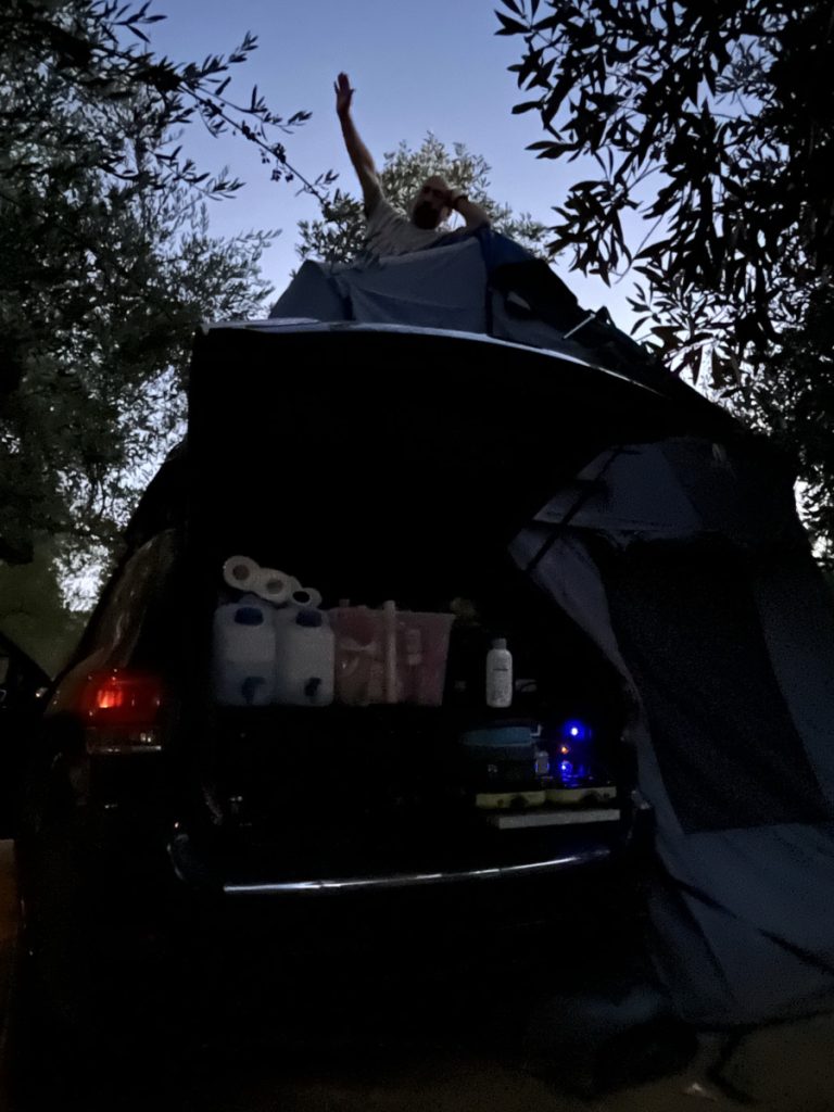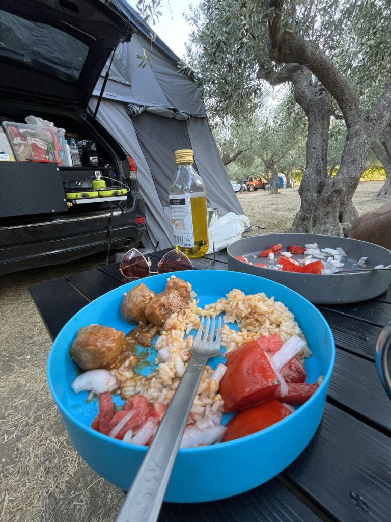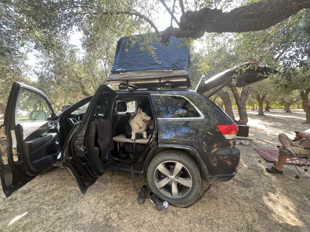 Wieczorne wycie kojotów i nocna głośna impreza prawdopodobnie kun lub kunopodobnych pozbawiła mnie i Toksona snu. Temperatura też nie była sprzyjająca dla tych co spali na dole i chwilę po czwartej kazali się wyprowadzić na zewnątrz pod pretekstem siku. Nieco niewyspani wpadliśmy w rytm porannego obrządku i chwilę po 10:00 siedzieliśmy już w samochodzie. Nie mamy problemu z szybkim pakowaniem o poranku bo perspektywa samochodowej klimy jest jak miód na nasze spocone serca 😜 Dziś pokonaliśmy bardzo fajną widokową trasę z Kalamaty do Sparty wiodącą przez historyczne pasmo górskie Tajget. Chwilę po 16:00 dotarliśmy na nasz dzisiejszy kemping „ Meltemi”, którego nazwa nijak się nie ma do aktualnych prognoz pogodowych 😜 Gdy po dotarciu na miejsce zaczęliśmy rozkładać manatki, Toki wsiadł do samochodu, albo z myślą, że tam będzie dalej chłodniej, albo z nadzieją że jedziemy dalej i nie chciał wysiąść 😆 Aktualnie temperatura spadła do 25 stopni i Tokson zaczyna odżywać 😜 Jest godzina 21:20. 😁