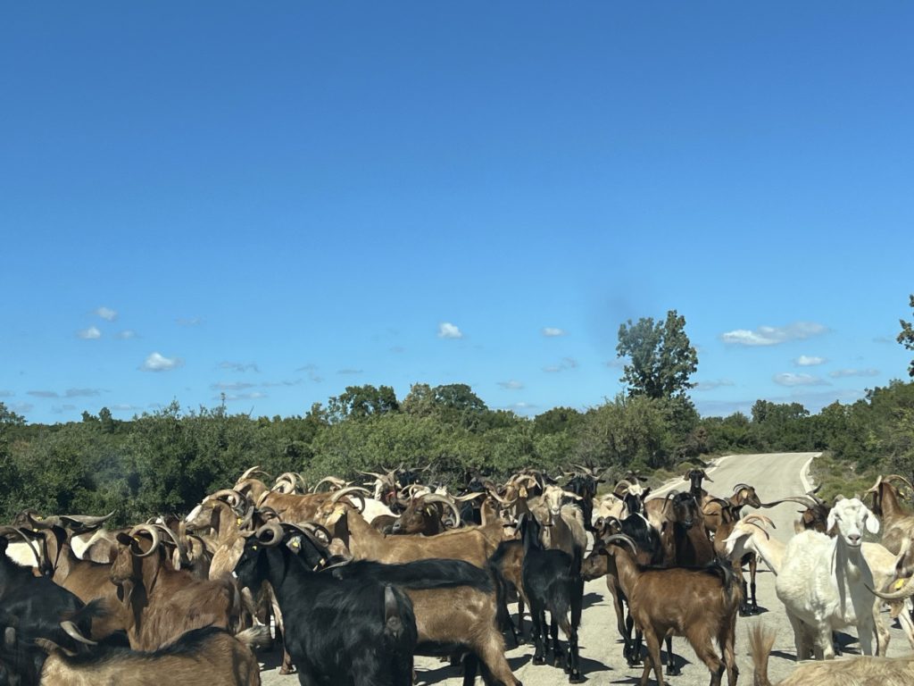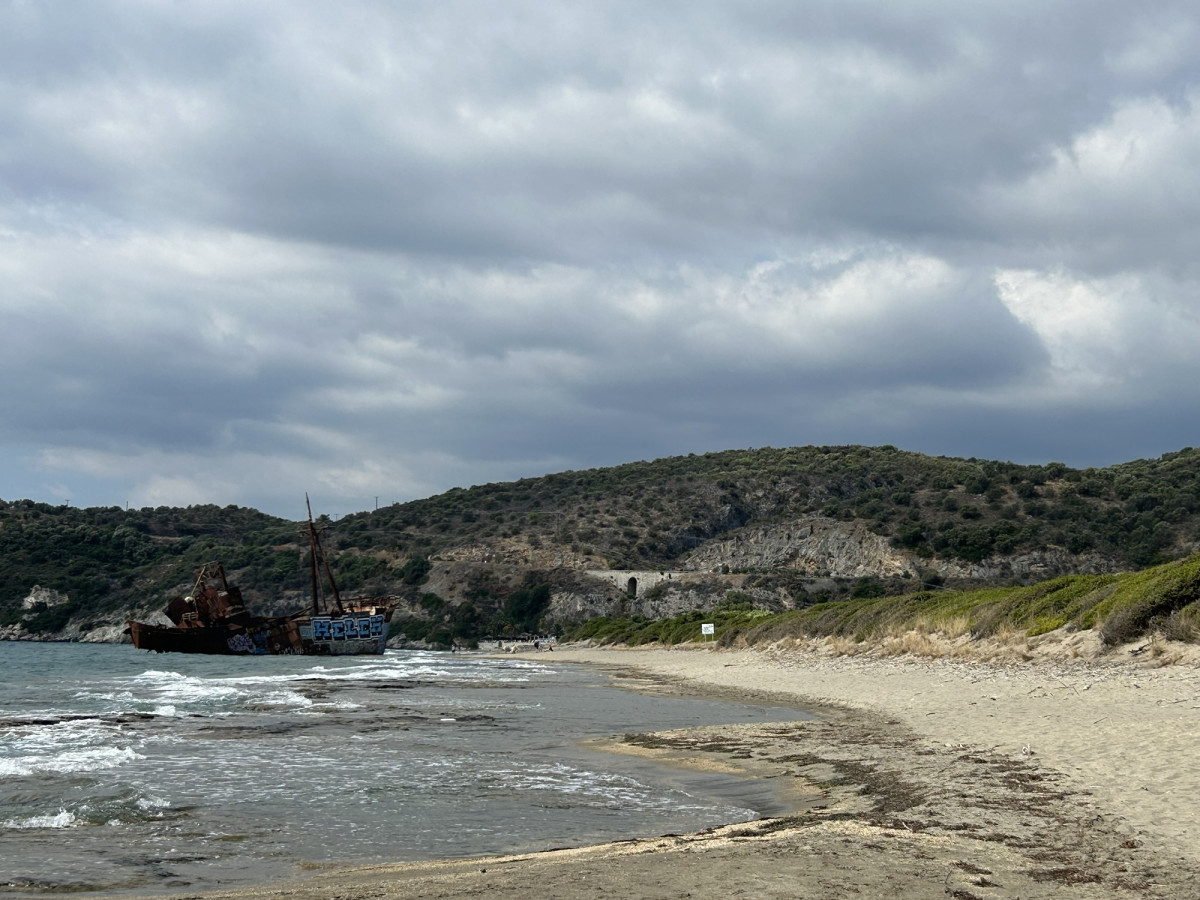 Nie wiem czy powinnam pisać o pozytywnych rzeczach i o tych na które liczę, bo jak na złość wszystko potoczyło się nie tak jak miało być 😕 Miała być piękna przespana noc ( chociaż w połowie 😜 ) a była katastrofa. W nocy tak wiało, że pomimo usunięcia osłony przeciwdeszczowej z namiotu, nie zmrużyliśmy oka. Cały namiot latał na boki wydając głośne dźwięki, przedsionek Toksona co chwilę przechylał się i wracał do dziwnych pozycji, a linka do którego był przypięty zerwała się na dobre. Tokson piszczał, był tak wystraszony, że zeszliśmy na dół do niego i tak przetrwaliśmy noc…. Rano okazało się że Tokson znowu nie może chodzić i tak oto rozpoczęłyśmy piątek, piąteczek …piątunio 😁 Do przejechania było niecałe 4 godziny i jak zwykle zrobiłyśmy to mniej uczęszczanymi drogami, dzięki czemu nacieszyliśmy oczy pięknymi widokami jak zwykle 😁 Po drodze natknęliśmy się na stado kóz, które nijak nie chciały zejść z ulicy, ale w odpowiedniej chwili obudził się nasz pies zaganiający i wyszczekał co trzeba przez okno i stado się ogarnęło, a my mogliśmy spokojnie przejechać 😁 Poza tym cały dzień wiało niemiłosiernie, a chwilami z ulgą dla Tokiego temperatura spadała nawet do 17 stopni, czyli o połowę dotychczasowej 😜 Witek dzielnie przeprowadził nas dziś przez kręte górzyste serpentyny Peloponezu i tu historia dzisiejszego dnia się kończy, no chyba, że wliczymy jeszcze wieczorną naukę gry w tysiąca 😜