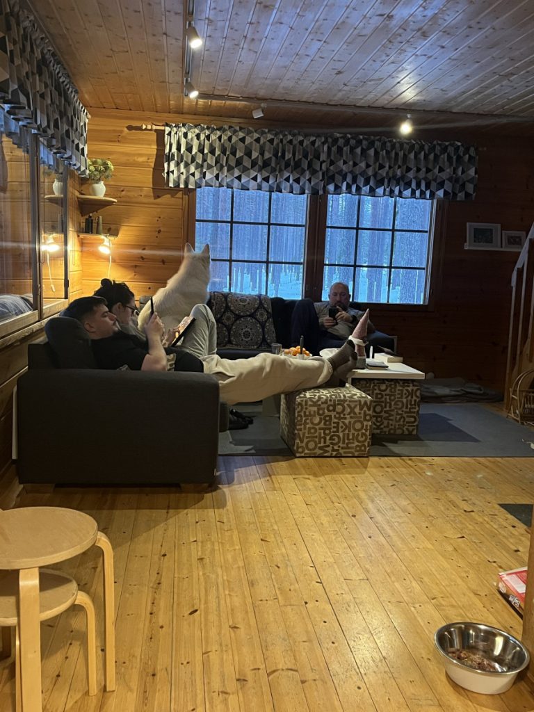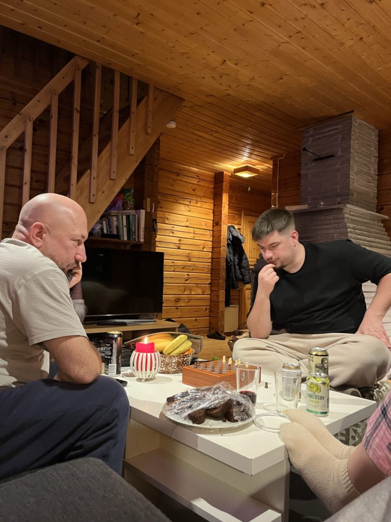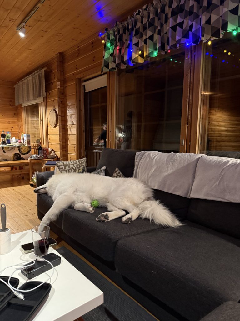 Parter wstał zdecydowanie wcześniej niż „pięterko”, bo jeszcze przed wschodem słońca 😜 Zupełnie nie rozumiem dlaczego 🤔 😉 Dzisiaj za dużo nie napiszę, gdyż oprócz wypadu do spożywczaka zupełnie nic nadzwyczajnego się nie działo 😕 Przy okazji zakupów obskoczyliśmy dwa ośrodki narciarskie i wypożyczalnie skuterów oraz 2 sklepy sportowe szukając butów dla Toksona 🤪 Po południu mniejszość przy pomocy 1/5 zaczęła przygotowania do jutrzejszej świątecznej kolacji, mamy już grzybową, farsz na pierogi, bigos 😀 i colę 😜 Jutro również mamy w planach nicnierobienie, bardziej rozbudowane, bo do sklepu również nie mamy w planach jechać 😜 Dzisiejsza pogoda nas rozpieściła bo rano było -16 a pod wieczór jedyne -8 😃 Rano zapowiadają ocieplenie, a my zastanawiamy się nad kupnem robaków, bo wygrzebaliśmy w schowku świder i wędki do wędkarstwa podlodowego 😀 Pozdrawiamy przedświąteczne 😁