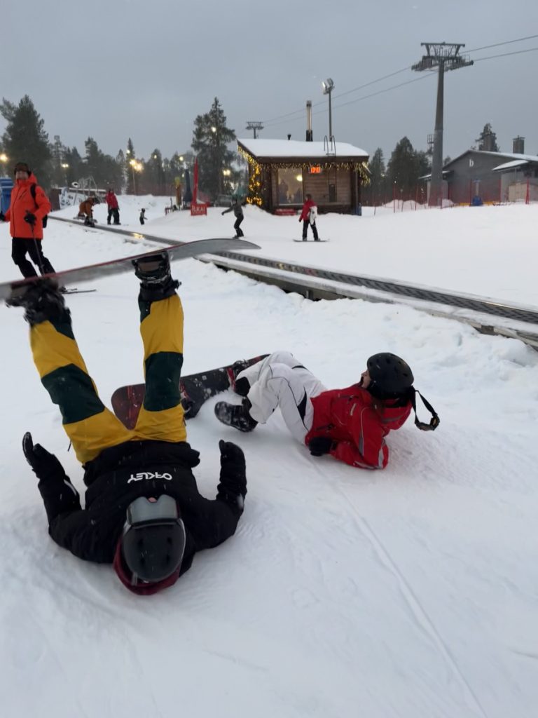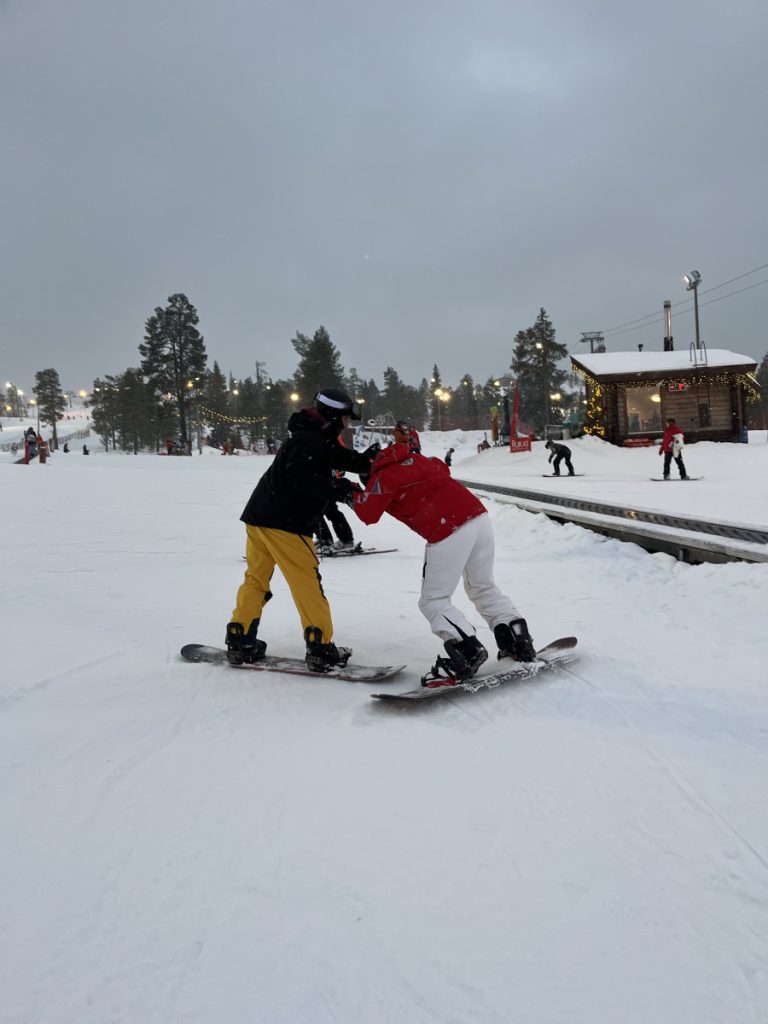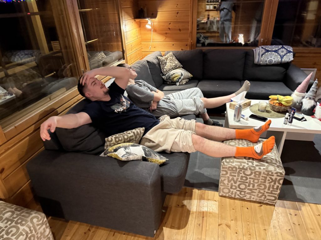 Zaczęliśmy dziś spalanie świątecznych kalorii 😀 Rano, tuż przed wschodem słońca, czyli po 10:00, wyskoczyliśmy na długi spacer, żeby chwilę po 12:00 już śmigać na stoku. Gonia zdecydowała, że bardziej ufa Erykowi więc wypożyczyła snowboard, my natomiast jak zwykle w stylu vintage 😜 Rozdzieliliśmy się na parę chwil żeby nie przeszkadzać młodzieży w ćwiczeniu artystycznych wywrotek, ale finalnie na koniec zjechaliśmy wszyscy razem już z samej góry 😀 Gratulacje dla Gosi za odwagę i wytrwałość i oczywiście za gigantyczne postępy 😀 Zrobiliśmy jeszcze szybkie zakupy na obiad i wróciliśmy do stęsknionego Puszka 😜 Po obiedzie polegliśmy honorowo na sofie. Dla niektórych dzisiejszy freestyle zakończył się trybem naprawczym, więc na jutro wymyślimy inną „aktywność” 🤪