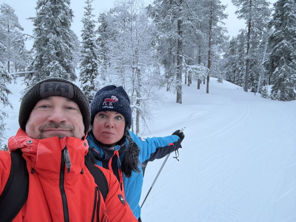 Ten dzień postanowiliśmy spędzić oddzielnie. Młodzież wykorzystała ten czas na snowboardowe szaleństwa na stoku, a my korzystając z okazji szlifowaliśmy jazdę na biegówkach 😀 Ponieważ narty wypożyczyliśmy przed 13:00 liczyliśmy się z tym, że za chwilę zapadnie zmrok i pojechaliśmy na oświetloną trasę. Przejechaliśmy dość trudny odcinek , jak się później okazało była to czarna trasa 😆 i zawróciliśmy na końcu bo zmieniała się w odcinek dla prawdziwych biegaczy czyli trasę zawodową wyznaczoną przez FIS 🤪 Przemieściliśmy się więc w drugą stronę, również na oświetlony odcinek i tu było zdecydowanie prościej, ale temperatura -17 stopni dawała się we znaki i twarze nam zamarzały szybciej niż lody w lodowce 😜 Po prawie trzech godzinach zakończyliśmy nasz Tour de Ruka i pojechaliśmy oddać narty. W tym samym czasie równie zmarznięci snowboardziści zjechali ze stoku. Pojechaliśmy standardowo po świeżą dostawę mrożonek na obiad i wróciliśmy do chatki gdzie część leczy nabyte dzisiejszego dnia obrażenia, a druga część stara się ciału przywrócić optymalne 36 i 6 😜 Ekipa „biegówkowa” zrobiła dziś prawie 6 km, spaliła przy tym ponad 2622 kalorii i może pozwolić sobie na dodatkowy kawałeczek pizzy 😜 Ekipa „deskowa” nie podała swoich statystyk, sugerując się zastanym widokiem większość czasu spędzili na utwardzonej śniegiem nawierzchni 🤪 Aktualnie czekamy na Nowy Rok, będzie za niecałe 2 godziny i mam nadzieję że przywitamy go w pełnym składzie i nikt się nie wykruszy 🤪 Z mroźnej Kitki do zasypanej śniegiem Polski przesyłamy życzenia, żeby ten Nowy Rok przyniósł wszystkim same radosne, szczęśliwe, zdrowe, piękne i pełne miłości chwile 🥰