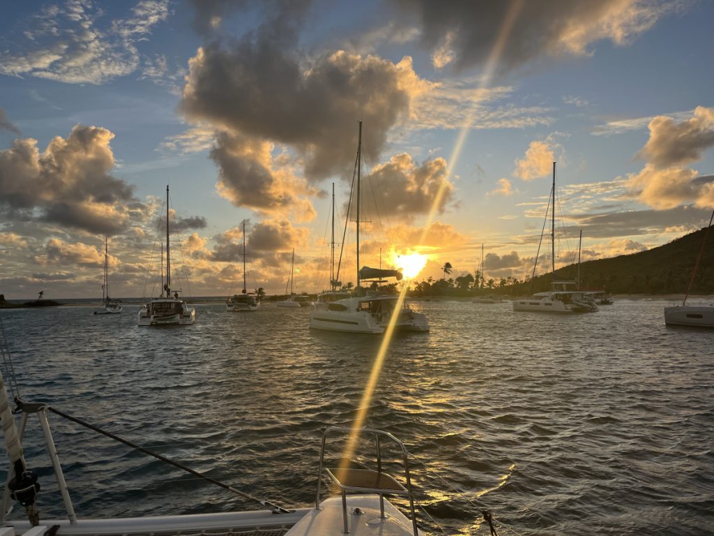 Postaram się chociaż po części chronologicznie ułożyć wydarzenia, jednak mogę mieć problem z niektórymi 😜 Po powrocie, z mapą w ręku uzupełnię również nazwy wysp i miejsc które odwiedziliśmy 😀 Trzeciego dnia zrobiliśmy dosyć długi przelot w kierunku Grenadynow. Cóż mogę napisać….znowu nic nie pamiętam oprócz ruchomej kajuty. Kapitan ruszył o 6 rano, na co nie mieliśmy wpływu, a plan wycieczki napięty więc nie zdążyłam wyjść z tej skaczącej na boki norki i tak już zostałam do końca dnia 😜 Po drodze mijaliśmy miejsce gdzie uśmiercali piratów, fajne wysepki, gościa co nam wciskał rybę i pewnie wiele innych atrakcji o których nie miałam pojęcia 😜 Aż dopłynęliśmy do wyspy Majro i tam wreszcie po 2 dniach postawiliśmy stopy na stałym lądzie 🤩 Chwilę poszwędaliśmy się po plaży i pobrobowalismy lokalnych trunków, po czym wróciliśmy grzecznie na pokład katamaranu 😏 Wieczór upłynął szybko i po kolacji rozeszliśmy się do kajut w celach wiadomych. Następny dzień przywitał nas pięknym wschodem słońca i przedłużył tę piękną passę na kolejne godziny. Cudowne chwile i kompletny chill, zdjęcia mówią same za siebie 😀 Około 13:00 po obiedzie zwinęliśmy kotwicę i udaliśmy się w kierunku Tobago Cays po drodze zahaczając o cudowną wyspę „Paradise Island” , wokół której zabaczyliśmy tak piękny lazur wody, że nas zatkało z wrażenia 😉 Po wystarczająco krótkim ( słońce tego dnia dawało nam popalić) pobycie na wysepce, popłynęliśmy na kolejne kotwicowisko znajdujące się przy wyspie Tobago Cays. Tam mieliśmy zarezerwowaną kolację której gwoździem programu były grillowane lobstery. Potem trochę się „pokiwaliśmy” na piaskowym parkiecie i w szampańskich nastrojach zostaliśmy podrzuceni na łódkę przez lokalesa 😜 Zabawę dokończyliśmy na pokładzie, a chwilę po 21:00 byliśmy już w grzecznie w łóżeczkach 😀